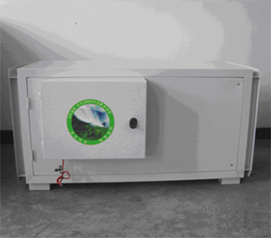 在引風(fēng)機(jī)的作用下、油煙氣混合污染物進(jìn)入初級凈化整流腔,腔內(nèi)的特殊結(jié)構(gòu)對污染物進(jìn)行均衡整流的同時,利用親油性的濾料對大顆粒油霧滴進(jìn)行吸附截留,分離出來的油水液體被集中回收。脫除油水的煙氣均衡地進(jìn)入次級柵狀高壓靜電場。油煙氣在高壓靜電場的作用下,被電離、分解,吸咐 、碳化,同時靜電場中產(chǎn)生的活性因子臭氧(O3),對煙氣中的有毒成份和異味進(jìn)行分解和除味。